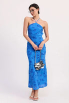 Sapphire Bloom Halter Midi Dress