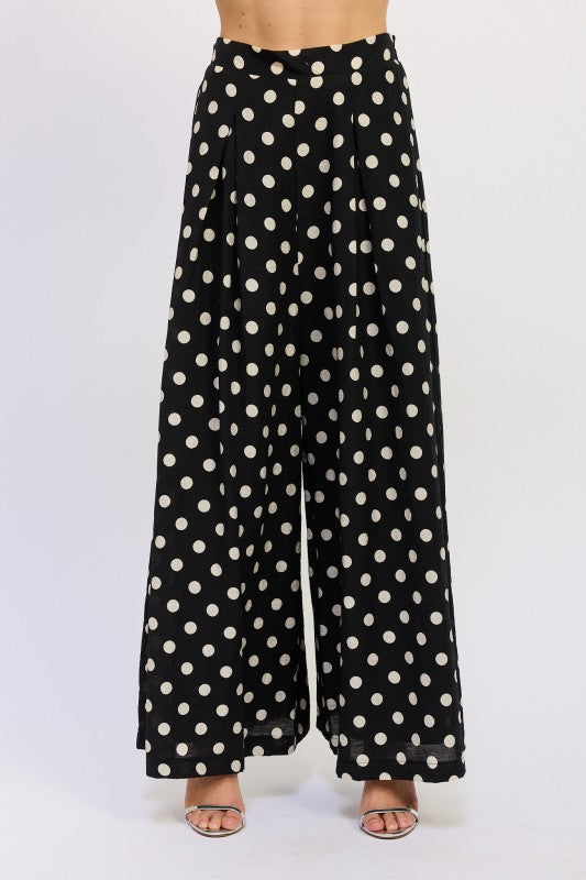 The Soft Statement High-Waist Polka Dot Pants bring ease and intention to a timeless silhouette. The fluid drape and wide-leg cut create a confident, unforced look that moves with you—relaxed yet refined. Designed to sit comfortably at the waist with a soft pull-on fit, they balance polish with everyday wearability. Pair them with the matching halter top for a complete statement or style them simply for an elevated, effortless feel.