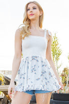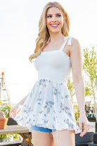 Experience effortless style in our Casual Affairs Smocked Sleeveless Top. With a mixed media design, this top features a sleeveless cut with shoulder ties and a smocked bodice for a flattering fit. Complete with a charming ruffle bottom, this top is perfect for any casual occasion.
