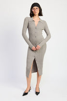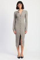 Stay cozy and stylish all day with our Clara Collared Long Sleeve Midi Knit Dress! The cable knit design is classic chic while the collar neckline adds a playful touch. Plus, the button up front makes this dress easy to slip on and off. With long sleeves, you'll stay warm and comfortable no matter where the day takes you. A perfect combination of comfort and style!