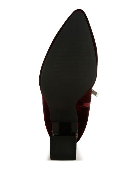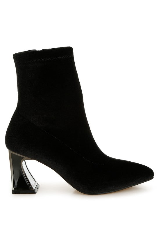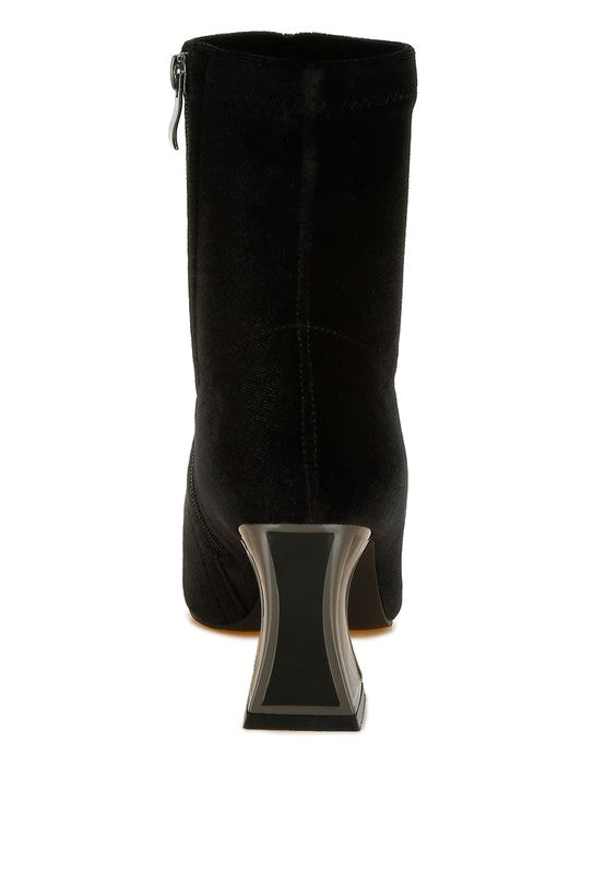 The Eclipse Edge Velvet Ankle Boot brings understated drama to every step with its sleek velvet finish and sculpted block heel. Designed to elevate your everyday and evening looks alike, this ankle boot balances softness with structure, creating a silhouette that feels confident, refined, and effortlessly wearable. Whether styled with denim or tailored pieces, it delivers a polished edge without trying too hard.