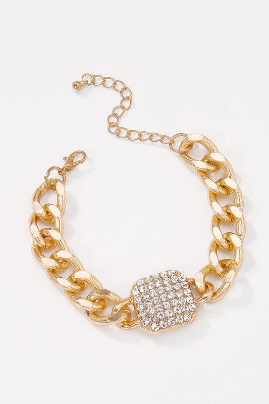 Square Rhinestone Block Chunky Chain Bracelet