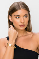 Stylish and cool, this bracelet is the perfect accessory for everyday wear. It features a chunky gold square rhinestone block chain, with a lobster clasp closure.